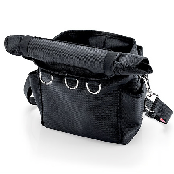 Nắp mở cuộn gọn để thao tác nhanh, có miếng dán gắn nhãn tùy chọn. Bên ngoài gắn hai kẹp kim loại cho máy cầm tay không dây. Ngoài ra, ba lô trang bị 11 vòng thép, trong đó 8 vòng móc dụng cụ có dây neo. Kèm theo 3 vòng treo
