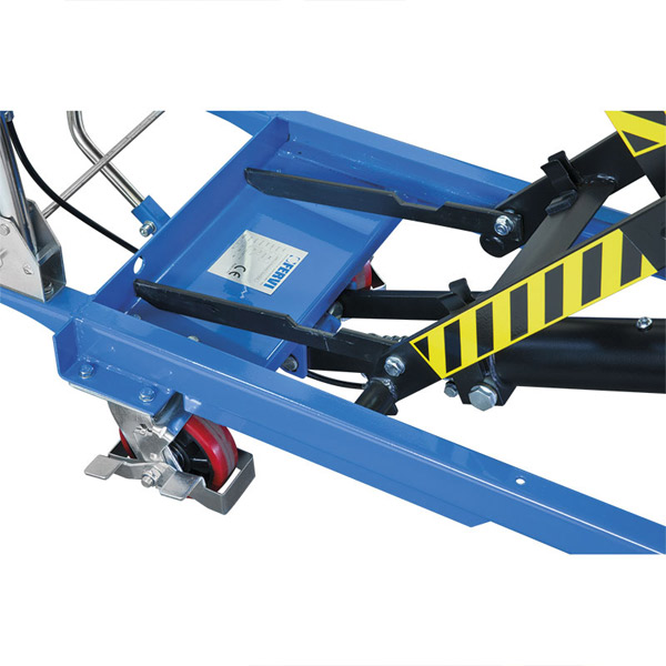 Bàn nâng 500kg bằng thủy lực FERVI 0010, di dộng như xe nâng hàng đẩy tay có thắng tay.