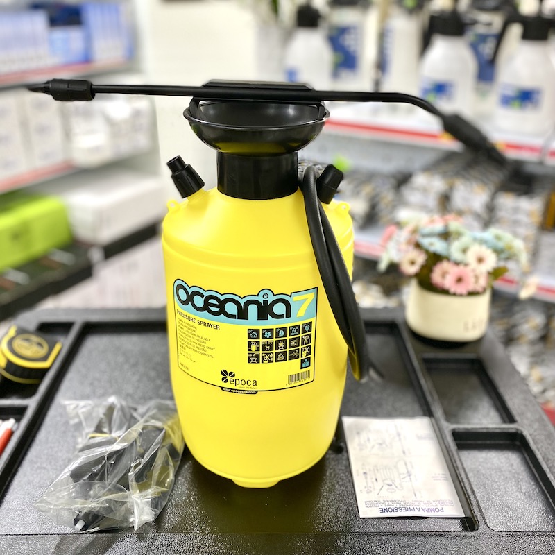 Bình phun xịt 7 lít áp lực, dung tích hữu dụng 5600ml. Có van toàn chống nổ bình, tay phun rời, có quai đeo hông. Nhập khẩu trực tiếp từ EPOCA - Sản xuất tại Italia. Phân phối toàn quốc qua hệ thống đại lý. Bảo hành chính hãng.