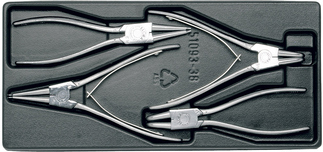 Bộ kìm phe ELORA MS-26, 4 cây cán trần, vật liệu chế tạo bằng thép Chrome-Vanadium 31 CrV3 / 1.2208, bề mặt phủ mạ