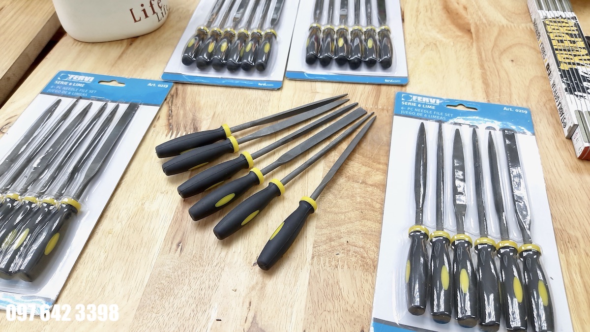 Bộ dũa cơ khí FERVI0219 gồm 6 chi tiết, đóng gói trong vỉ nhựa, dài 180mm, cán nhựa cứng. Phù hợp cho kim loại, đa dạng thiết diện: dẹt, tròn, vuông, bán nguyệt, chữ nhật, tam giác. Nhập khẩu từ Italia.