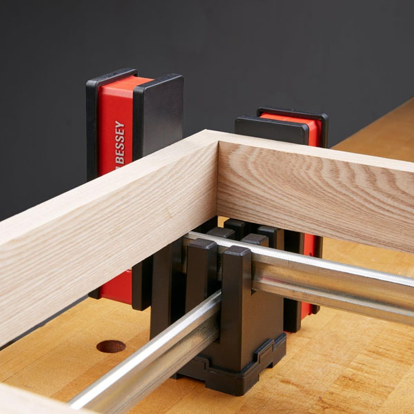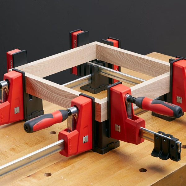 Bộ cảo K-body BESSEY KRE100-2K từ Đức, 4 cảo 1m, lực kẹp 8.000 N, ngàm kẹp song song, má kẹp điều hướng, đế gá và thanh kẹp nối dài, đa năng cho làm mộc.