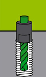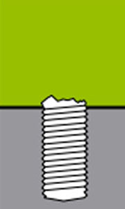 Ốc gãy chìm vào bên trong, tình thế này hay xảy ra, bước lấy nó ra vẫn vậy nhưng bước khoan được xem là khó nhất. Cần giữ hướng cho mũi khoan thẳng với bulong. Đầu dẫn hướng phát huy tác dụng rõ nhất trong tình thế này.