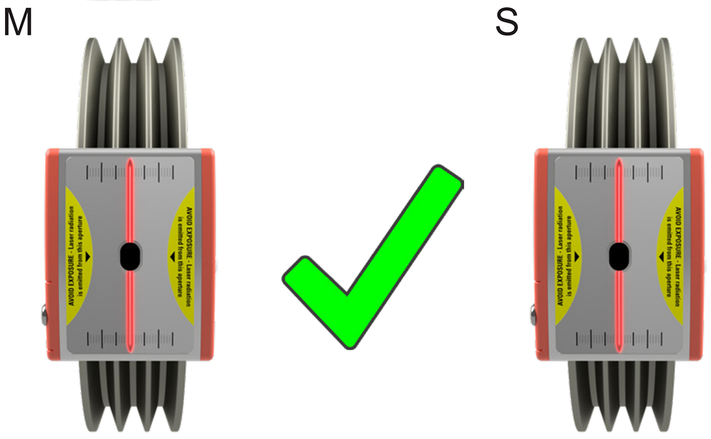 Việc sử dụng hai đơn vị laser giúp người dùng dễ dàng xác định điều chỉnh cần thiết, ví dụ: có sửa lỗi song song hay lỗi góc. Bạn có thấy ròng rọc của bạn có được căn chỉnh chính xác hay không.
