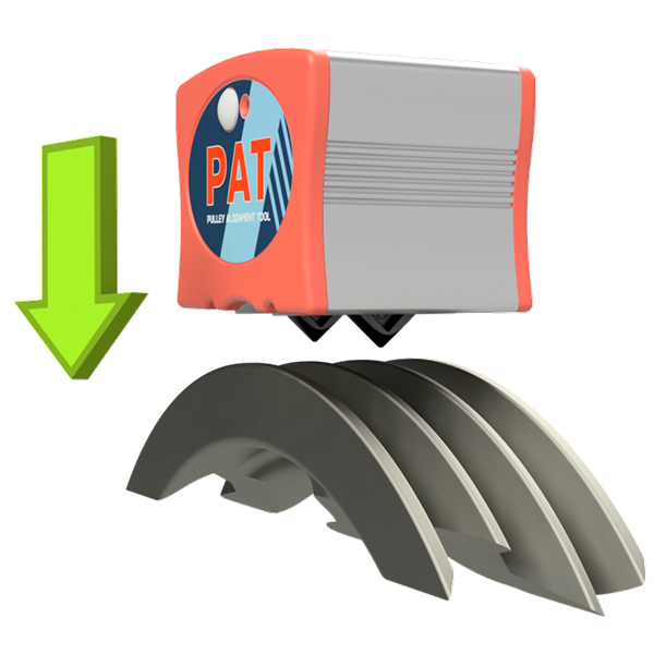 Cân chỉnh Puli bằng laser, PAT pulley alignment laser. Vì các rãnh của đai được sử dụng để đối chiếu, bạn có thể thấy ngay lập tức các ròng rọc có được căn chỉnh chính xác hay không. PAT được cung cấp với hai đơn vị laser tải bằng lò xo có thể gắn được vào các rãnh ròng rọc.