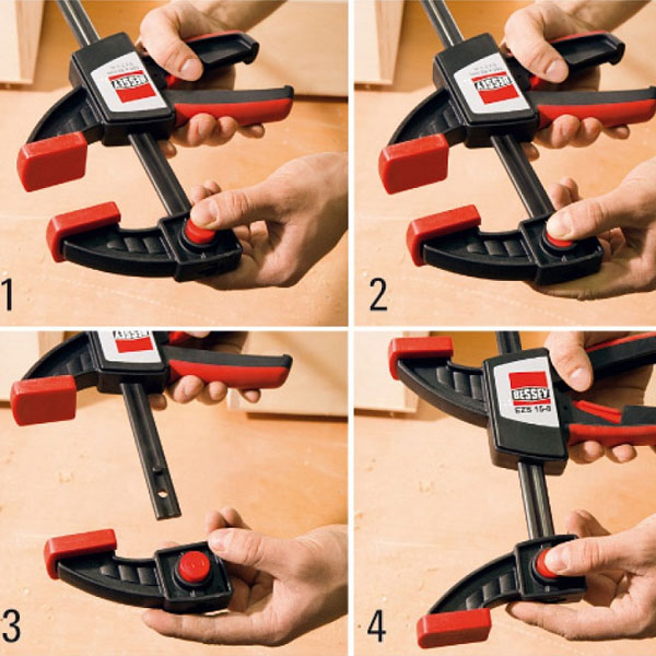 • Điều chỉnh nhanh ngàm cảo chữ F bằng cách giữ nẫy cò và kép trượt trên ray.