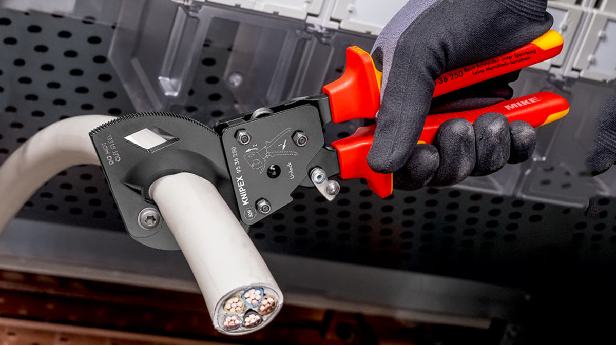 kéo cắt cáp Knipex 95 36 250 được ghi nhận đáp ứng tiêu chuẩn này. Nghĩa là phần tay cầm đã được thiết kế và kiểm tra để đảm bảo cách điện. Hoàn toàn phù hợp trong điều kiện làm việc thông thường của thợ điện.