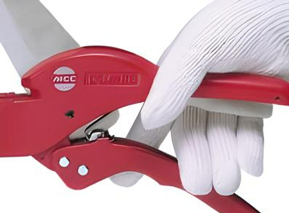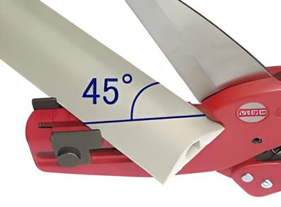 | Khả năng cắt Có thể cắt được nhiều loại vỏ bọc bảo vệ bằng nhựa như loại dùng cho dây điện sàn, dây điện trong nhà, hay ống dẫn tái thiết. | Chốt chặn (stopper) Chốt chặn gắn ở đầu dụng cụ có thể trượt được. Bằng cách trượt theo vật liệu, luôn có thể cắt ở vị trí tối ưu nhất phù hợp với từng loại vật liệu. | Cắt góc 45° Chỉ cần thay đổi hướng của chốt chặn một bên là có thể cắt góc 45° một cách dễ dàng. Đây là tính năng hữu ích khi xử lý các góc sàn hay khu vực không thể che phủ hoàn toàn bằng góc vuông. | Mở lưỡi dao bằng một chạm Khi mở tay cầm, lưỡi dao sẽ tự động mở ra nhờ cơ chế “mở một chạm”. Tính năng này cho phép thao tác bằng một tay, giúp nâng cao đáng kể hiệu suất làm việc. | Cơ chế bánh cóc (ratchet mechanism) Áp dụng công nghệ từ kéo cắt ống nhựa, cơ chế bánh cóc truyền lực hiệu quả đến mũi lưỡi dao. Quá trình cắt diễn ra nhẹ nhàng mà không để lại phoi cắt. |