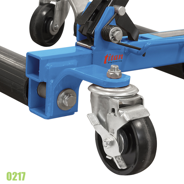 0217 kích kẹp nâng dịch chuyển và định vị xe hơi, gắp từng bánh xe. Tiện ích cho việc di chuyển xe hơi vào vị trí trong không gian hẹp. Kích sẽ kẹp chặt bánh xe, cố định trên rãnh, trọng lượng xe oto sẽ đè lên kích. 4 bánh xe điều hướng linh hoạt 360 độ, cho phép bạn xê xích vật nặng vào vị trí mong muốn.
