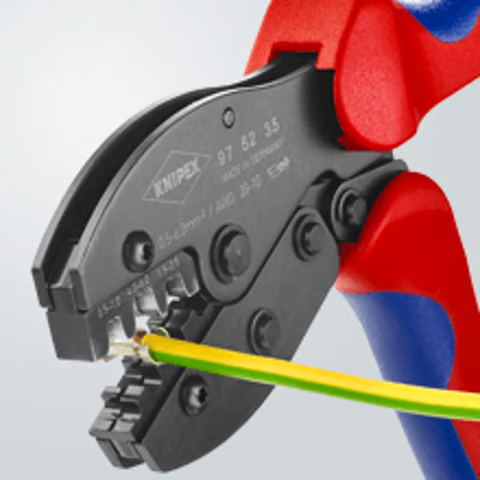Kìm Knipex 97 52 35 đặc biệt phù hợp cho các đầu cos không cách điện, mở rộng ứng dụng cho hệ thống điện dân dụng, ô tô, bảng tủ điện công nghiệp.