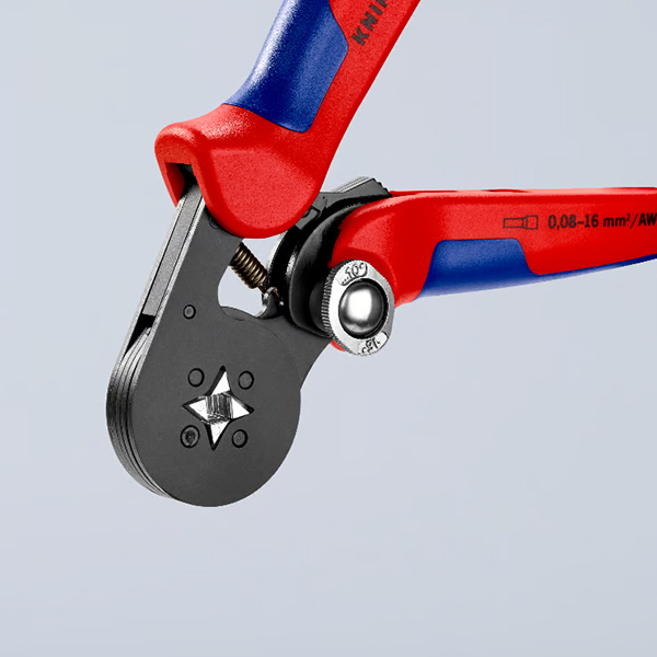 kìm bấm cos Knipex 97 53 04 tự động điều chỉnh theo đầu cos. Cơ cấu khóa hành trình bên trong
