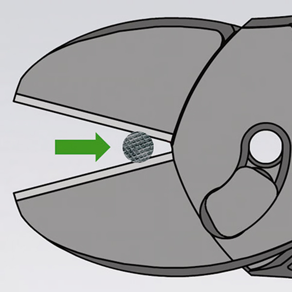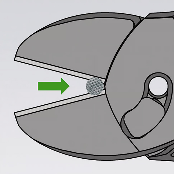 Trước tiên, tạo một vết khía trên dây bằng KNIPEX TwinForce® cho đến khi lực bóp tay cần thiết tăng lên đáng kể. Sau đó, mở kìm và trượt dây ngược lại về phía khớp nối. Giữ lưỡi cắt đúng vào vị trí khía vừa tạo ở bước 1
