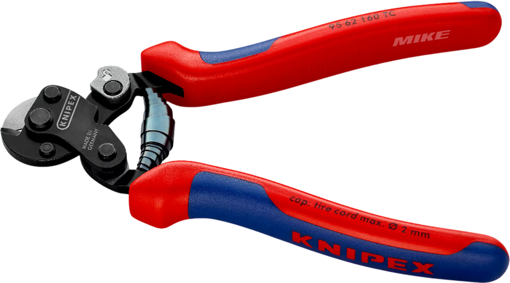 Kìm cắt cáp Knipex 95 62 160 TC dài 160 mm. Cắt dây xoắn sợi nhỏ như tyre cord, cáp lõi thép bện, cáp đồng hoặc nhôm mềm có đường kính đến Ø 2.0 mm. Trọng lượng nhẹ, thao tác nhanh, phù hợp cho các dây chuyền lắp ráp hoặc công việc yêu cầu thao tác lặp lại nhiều lần. Sản xuất tại CHLB Đức.