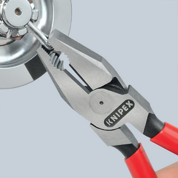 Kìm đa năng Knipex 02 lực bẩy cao dòng 02 của Knipex. Kềm dành cho những người thợ không chấp nhận sự thỏa hiệp giữa sức mạnh và độ chính xác. Cơ chế lực bẩy được tinh chỉnh — trục bản lề đặt gần lưỡi cắt giúp tăng lực tác động. Giảm tới 35% công sức so với kìm thường. Chỉ cần bóp nhẹ, thép cứng hay dây điện to cũng phải “khuất phục”.