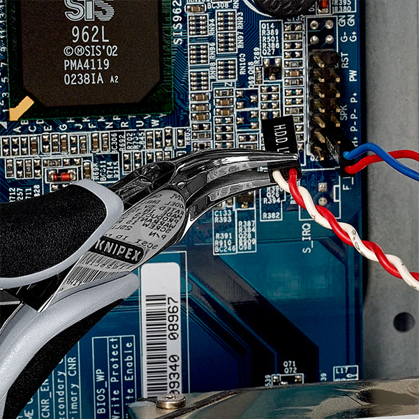 Tay cầm của KNIPEX 35 ESD được thiết kế theo chuẩn ESD (ElectroStatic Discharge) có khả năng phân tán điện tích tĩnh điện một cách an toàn. Bảo vệ các linh kiện bán dẫn, vi mạch và transistor khỏi các tia phóng điện nhỏ có thể gây hư hỏng.
