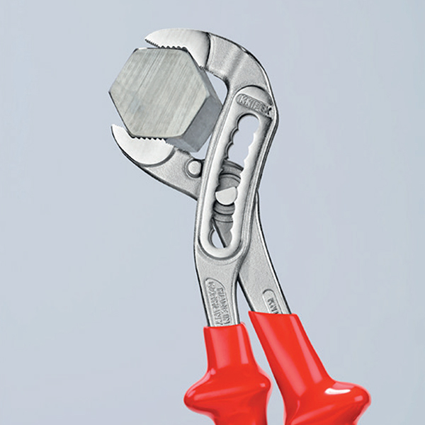 Knipex 88 06 250 là công cụ chuyên nghiệp cho thợ điện và kỹ sư công nghiệp cần thao tác trên hệ thống điện áp cao. Cơ chế tự kẹp giúp truyền mô-men trực tiếp mà không hao lực, trong khi 9 nấc điều chỉnh mở rộng đáng kể khả năng kẹp. Với thân thép vanadi tôi dầu, răng cứng 61 HRC.