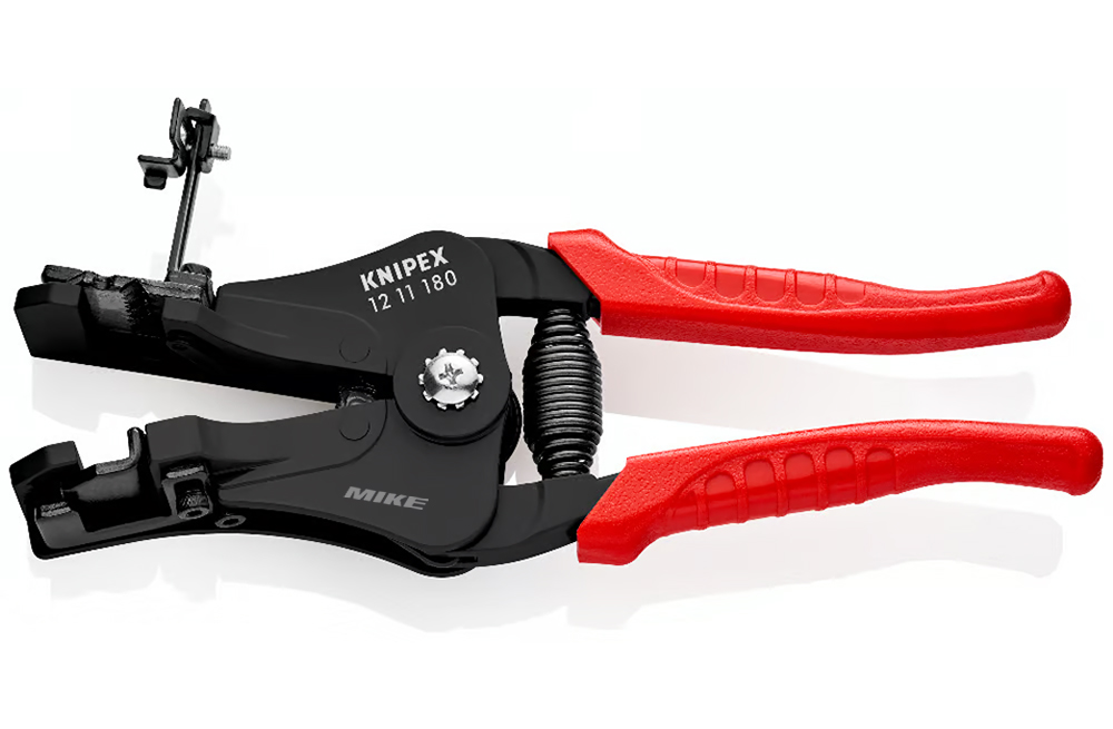 Kìm tuốt dây điện Knipex 12 11 180 dùng để tuốt lớp vỏ cách điện khỏi dây dẫn điện tròn. Phù hợp cả dây đơn lẫn dây mềm nhiều lõi. Lưỡi dao được mài định hình theo đường kính dây. Bóc sạch lớp vỏ ngoài mà không cắt phạm vào lõi kim loại. Trong quá trình tuốt, dây được giữ cố định nhờ cơ cấu hàm kẹp giúp đường cắt ổn định.