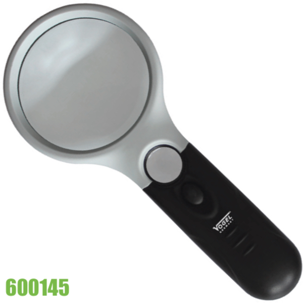 Kính lúp kỹ thuật Ø75 mm có đèn LED. Vogel Germany có mã hàng 600145. Dùng trong soi chiếu tiêu bản ở những nơi thiếu sáng, các góc hẹp và không gian nhỏ. Tay cầm bằng nhựa cứng ABS, sử dụng pin AAA thông dụng. Đóng cắtt đèn chỉ bằng 1 nút nhấn, thuận tiện, nhạy.
