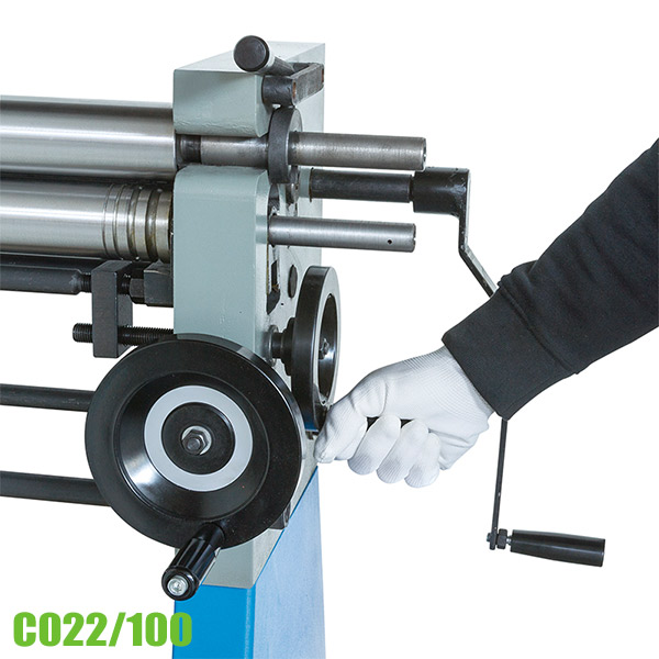 Dụng cụ lốc tôn 3 trục C022/100 có phần khung bằng thép cao cấp rất chắc chắn. Có các thanh chống ngang giúp khung cứng vững khi vận hành. Một lưu ý về kết cấu của máy là máy lốc tôn làm việc trong điều kiện uốn lực cao nên thân máy phải chắc chắn và cứng vững. Ngoài ra, con lăn được làm bằng vật liệu cao cấp giúp sử dụng bền bỉ. Điều chỉnh độ rộng bằng tay quay, rất nhẹ nhàng và dễ dàng.