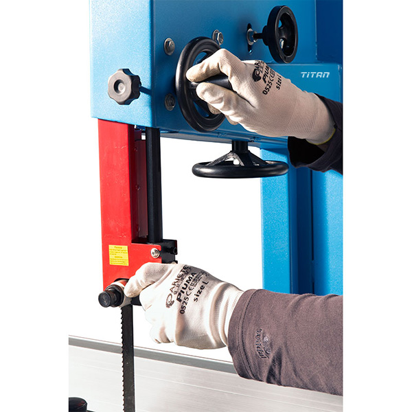 máy gia công gỗ này được trang bị bánh cưa lớn có đường kính 455 mm và có khả năng cắt với kích thước lên đến 445 x 330 mm, cho phép xử lý các khối gỗ lớn một cách dễ dàng. Lưỡi cưa của máy có kích thước là 3430 x 20 x 0,65 mm với độ cứng T4, giúp tăng hiệu quả cắt và kéo dài tuổi thọ của lưỡi cưa.