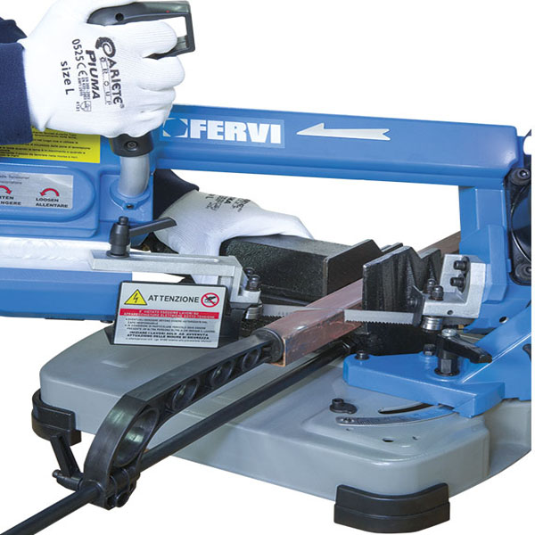 FERVI 0362 là máy cưa vòng để bàn dùng điện 230V, trang bị động cơ không chổi than công suất 0,4 kW. Tốc độ cắt điều chỉnh vô cấp từ 35 đến 80 m/phút, thích hợp cắt thép, inox, nhôm theo góc 0° đến 60°. Khả năng cắt tròn và vuông đều đạt 125 mm (góc 90°) và 76 mm (góc 45°). Máy nhỏ gọn, dễ bố trí tại bàn làm việc. Lưỡi cưa tiêu chuẩn 1435 x 12,7 mm.