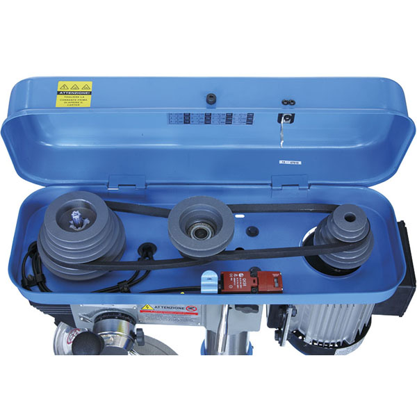 Máy khoan đứng có bàn khoan tròn, xoay chuyển quanh trục và tịnh tiến lên xuống. Điều khiển 12 cấp tốc độ từ 280 ÷ 2380 vòng/phút. Khả năng khoan tới đường kính 20mm.