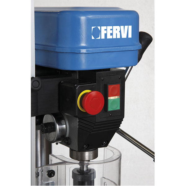 Máy khoan bàn cỡ nhỏ cho gara, nhà xưởng. Đường kính trụ nâng đỡ thân máy ∅72mm, bàn làm việc hình tròn ∅305mm có thể xoay và nghiêng. Trục chính côn kiểu CM2, hành trình lên xuống tối đa trục 80mm. Khả năng khoan trên gang ∅20mm, thép hợp kim thấp ∅16mm cần khoan mồi trước. Motor một pha 230V công suất 650W phổ biến ở nước ta. Trọng lượng máy 51kg đựng trong hộp gỗ khi giao hàng, chính hãng Fervi Italia.
