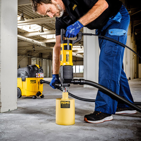 REMS Picus S1 – Khoan rút lõi thay vì đục. Dễ dàng, nhanh chóng, không rung, chẳng hạn khoan 200 mm vào bê tông có cốt thép Ø 62 mm chỉ trong 3 phút. 1 hệ thống – 4 ứng dụng. Lý tưởng cho thợ sửa ống nước.
