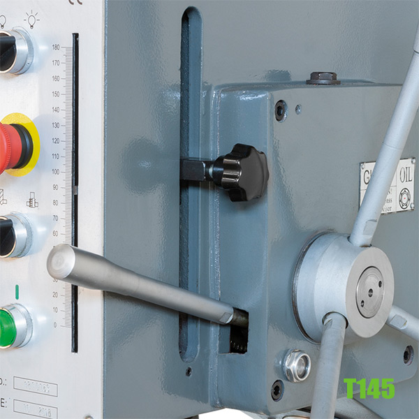 Máy khoan đứng cỡ lớn đường kính trụ chính ∅150mm, hành trình trục max 180mm, động cơ mạnh mẽ. Khả năng khoan max trên gang ∅45mm, khoan trên thép max ∅40mm, khoan tiếp max ∅35mm. Có chức năng ăn xuống tự động 2 cấp 0,1 - 0,20 mm/g. Có hệ thống làm mát tích hợp trên thân, đèn chiếu sáng, kính chống văng.