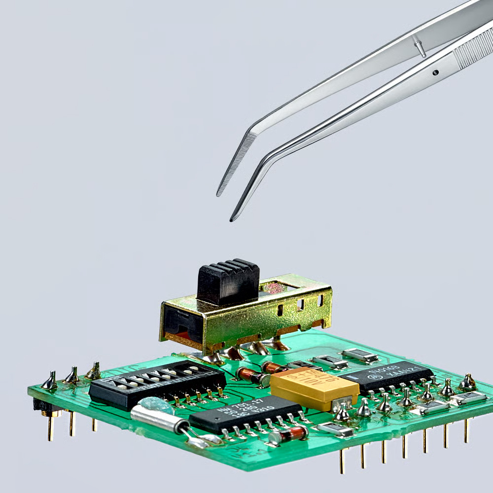 Tay cầm có khía chống trượt, kẹp chắc linh kiện nhỏ. Phù hợp trong môi trường công nghiệp thông thường. Mã hàng khắc laser tinh xảo trên thân.
