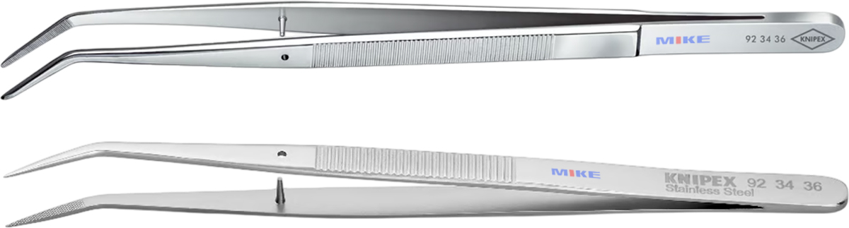 Nhíp gắp đầu cong Knipex 92 34 36 dài 152 mm, đầu nhọn 0.5 mm, cong 25°, chuyên dụng cho lắp ráp điện tử và cơ khí chính xác. Thép không gỉ chất lượng cao, chống từ 80%, bề mặt mờ, chống ăn mòn và kháng axit tốt.