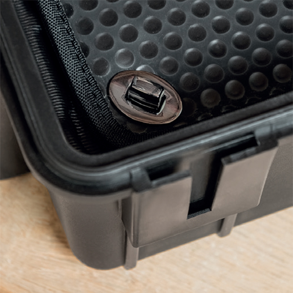 | Có thể sử dụng như bệ đứng hoặc ghế ngồi | Cơ cấu khóa vali bằng chốt gạt chắc chắn | Cố định bảng dụng cụ an toàn, ngăn dụng cụ rơi khỏi khoang đáy |